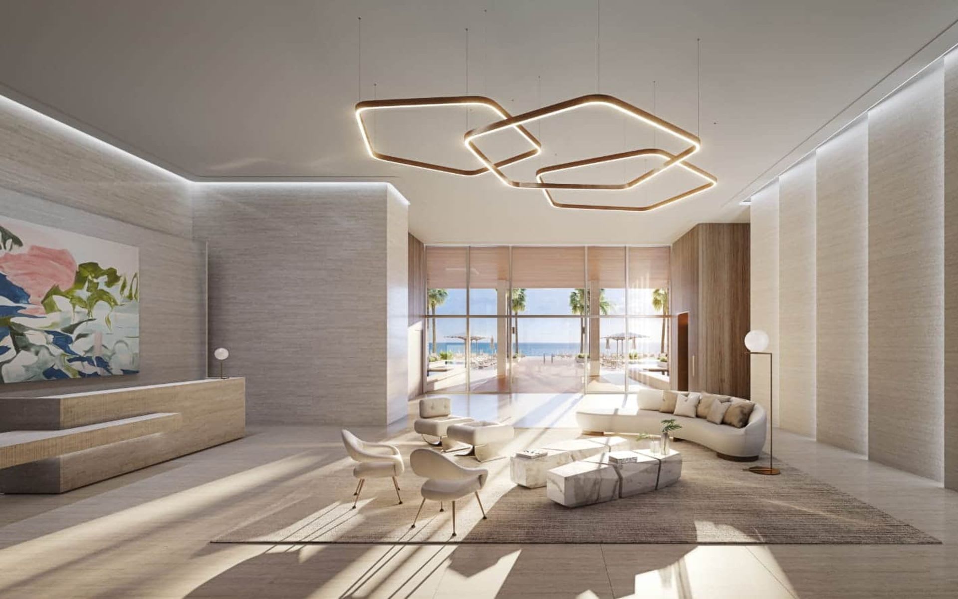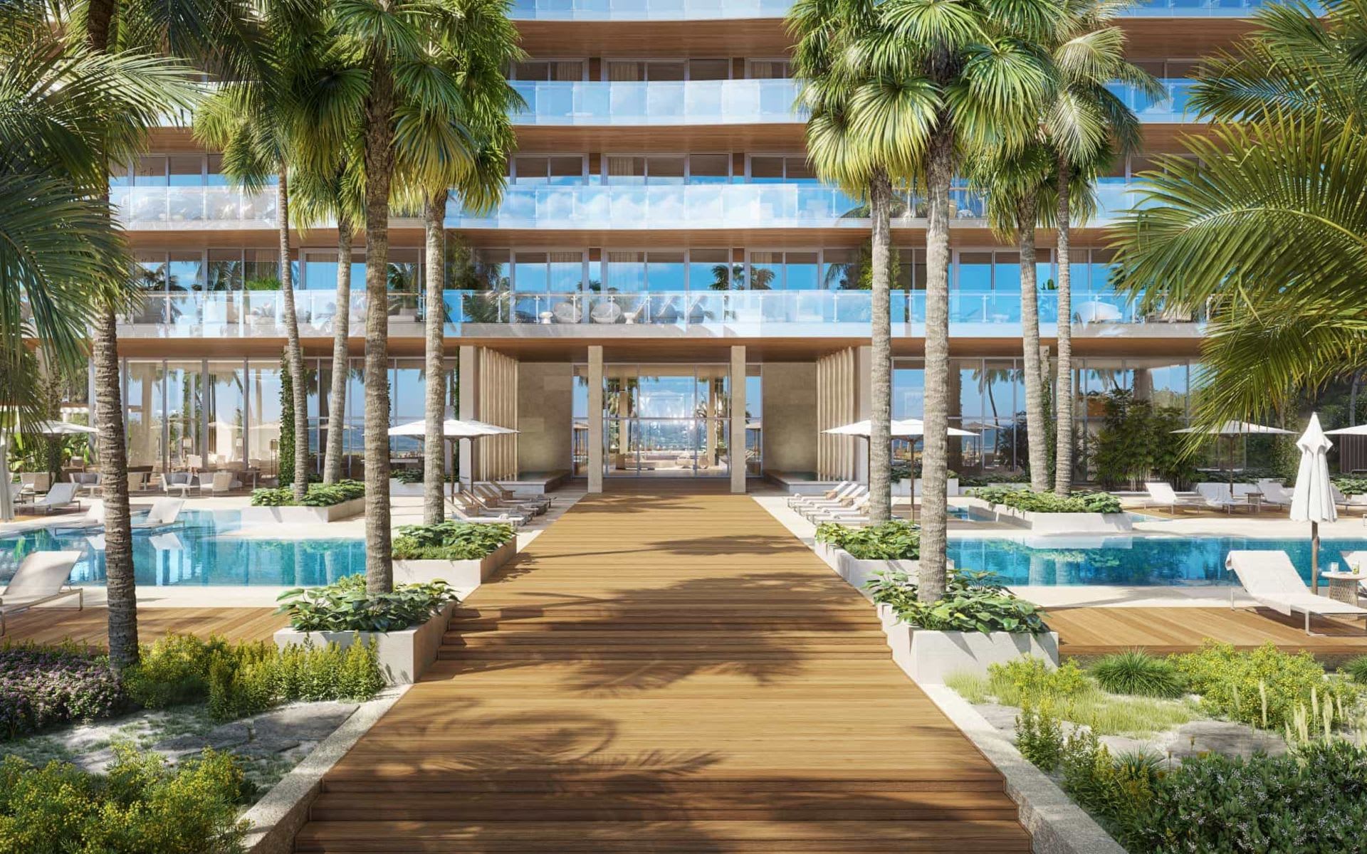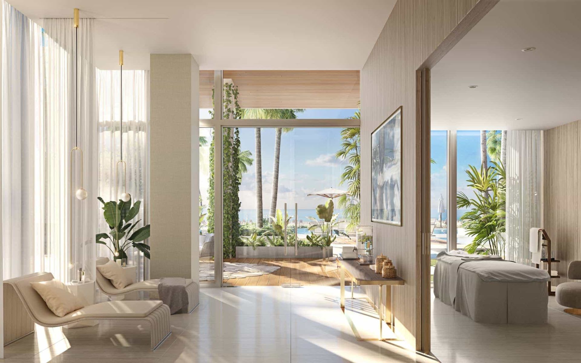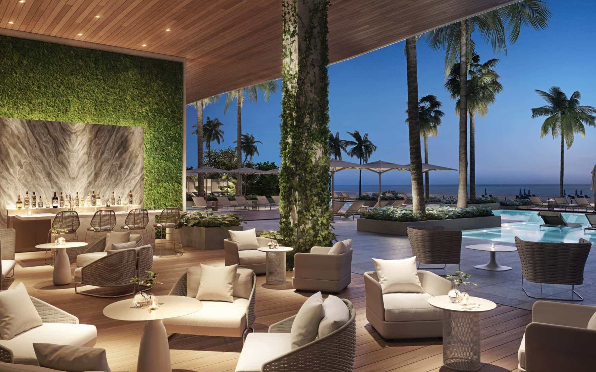From the moment you arrive, the ocean beckons. Grand vertical gardens guide you from the porte-cochère through a double-height lobby awash in natural stone, past the pools and meditation gardens, straight to the sand. The transition has never been more seamless: from city, to home, to ocean.