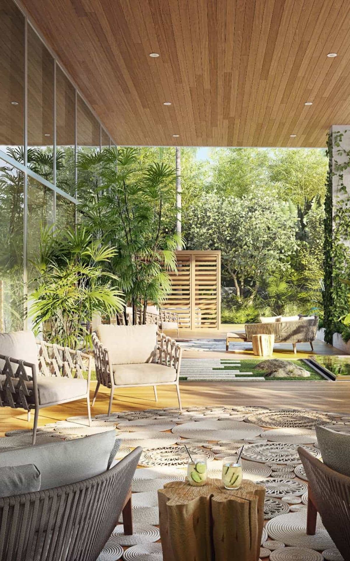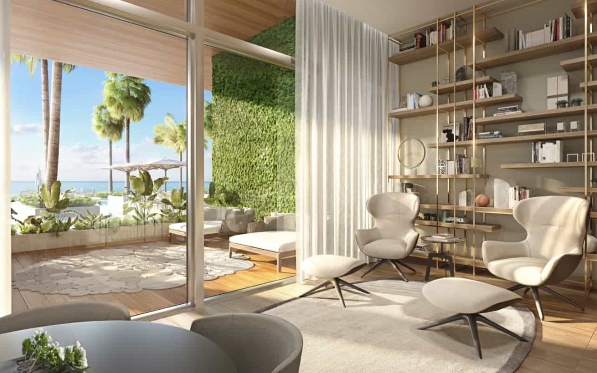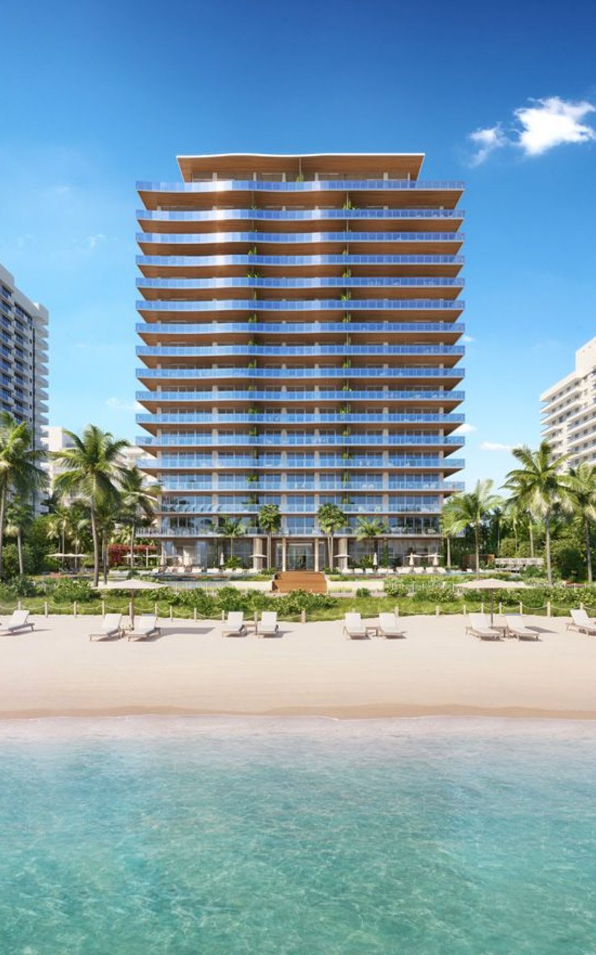 On Collins Avenue, a dense array of indigenous plantings—from towering palms to sculptural green walls—create a sense of privacy and grandeur for those arriving home.