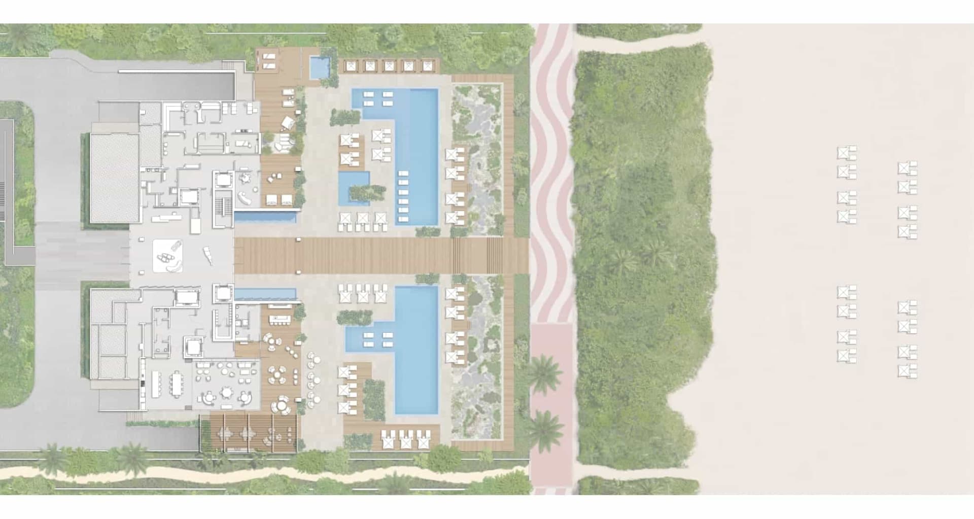 The private spa presents owners with cutting-edge therapies, soothing massages and a thermal suite designed to take them on journeys that energize both body and soul. Residents and their guests can spend time in the club room that is complete with a chef’s kitchen and outdoor summer kitchen, in the outdoor bar and lounge, or simply reading in the library. Two infinity swimming pools overlook the beach, which is only a few steps away.